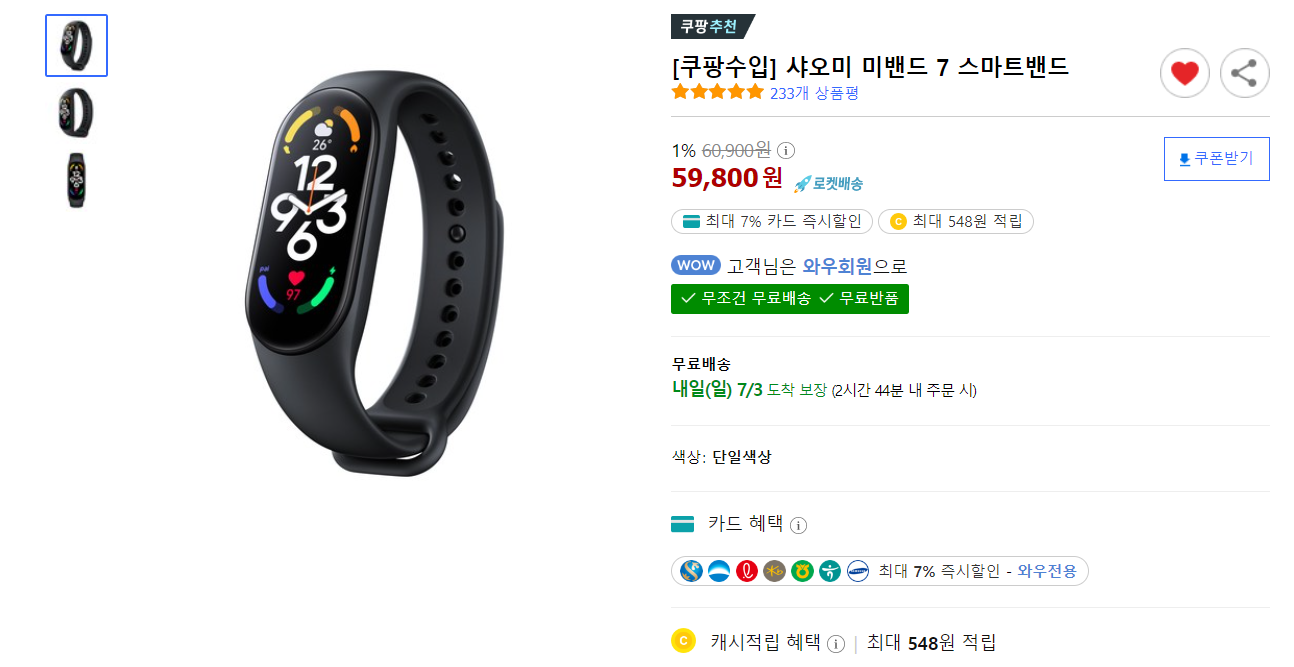[쿠팡수입] 샤오미 미밴드 7 스마트밴드